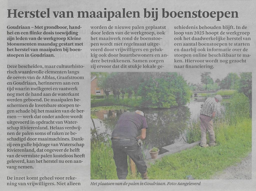 Vanaf 2025 zijn we bezig om een achttal boenstoepen te restaureren, verdwenen en kapotte palen te vervangen en de website aan te passen. Dit wordt mede mogelijk gemaakt door de volgende samenwerkingspartners: